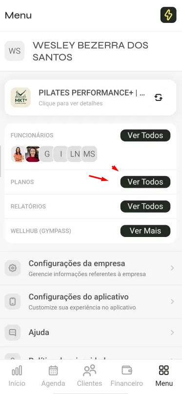 Toque em Planos e depois em Ver todos para visualizar todos os contratos ativos.