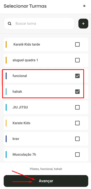 Após escolher as turmas, clique em Avançar e depois em Salvar alterações.